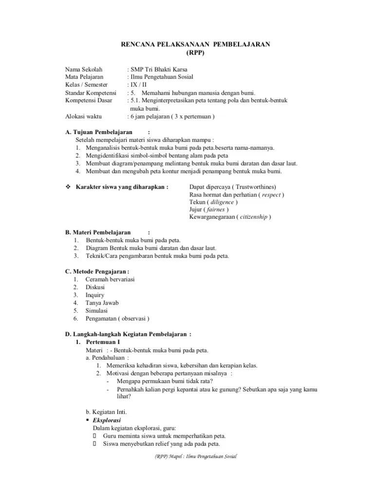 Contoh rpp k13 ilmu pengetahuan sosial smp kelas 7 semester 2 format 1 .
